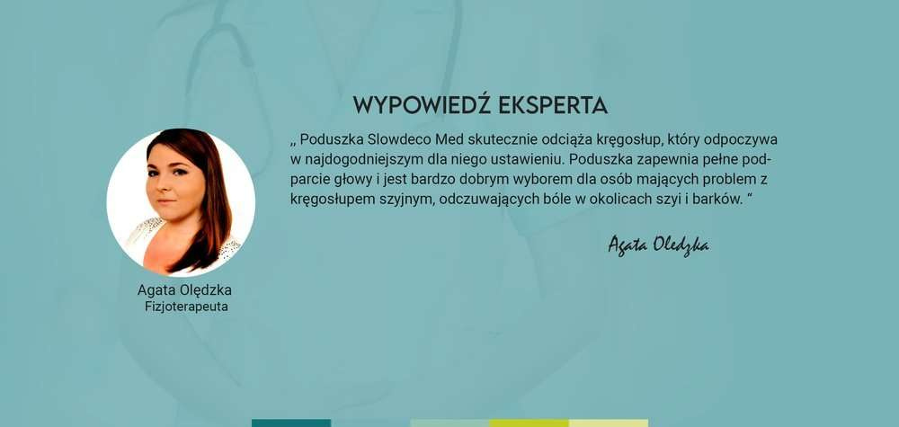 Dobrze dobrana poduszka jest jednym z kluczowych elementów zapewniających zdrowy, regenerujący sen. Zapewniając sobie odpowiednią regenerację w nocy, poprawiasz swoje samopoczucie w dzień! Opracowane przez SlowdecoMed poduszki posiadają cechy, które pozytywnie wpływają na sen, sprzyjając uczuciu relaksu. Jedną z najważniejszych właściwości każdej poduszki jest wsparcie, jakie oferuje - lub możliwość ustawienia i utrzymania głowy w jej naturalnym, anatomicznym ułożeniu. Pianka termoplastyczna wykorzystana w naszym modelu doskonale służy temu celowi. Poduszka dopasowuje się do kształtu ciała, a ergonomiczny profil zapewnia odpowiednie podparcie bez ucisku. Innym ważnym czynnikiem redukującym ruch i zapewniającym nieprzerwany sen jest odpowiednia temperatura.